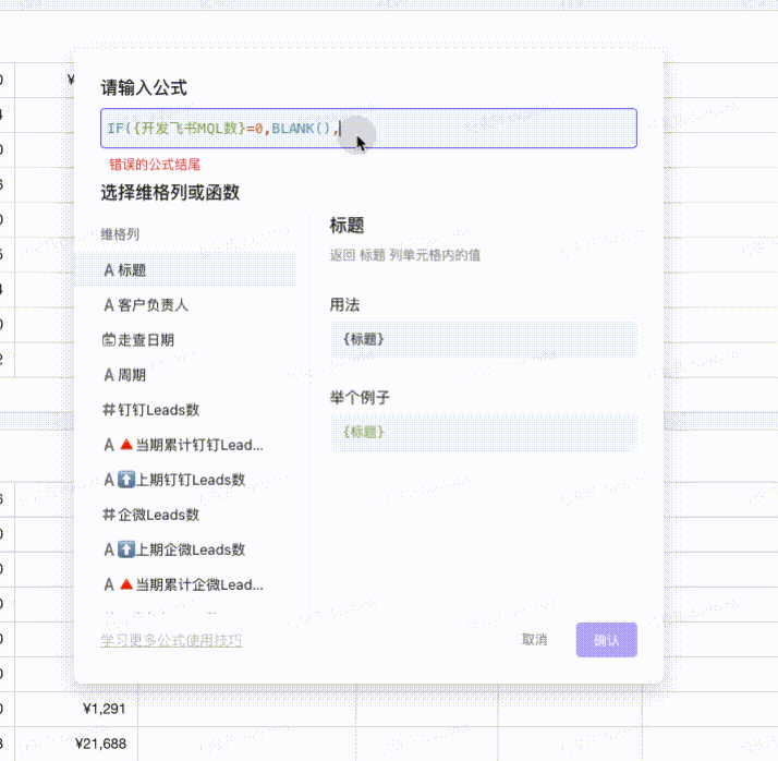 编辑智能公式时,换行后,函数与字段的自动补齐失效,未换行时正常,详见动图。